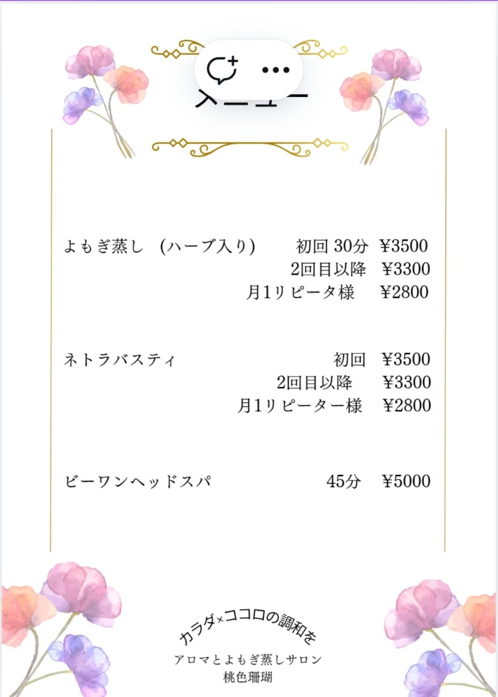 ・マッサージを行うスペースとして3畳程必要になります。よもぎ蒸しは1~2畳程になります。
